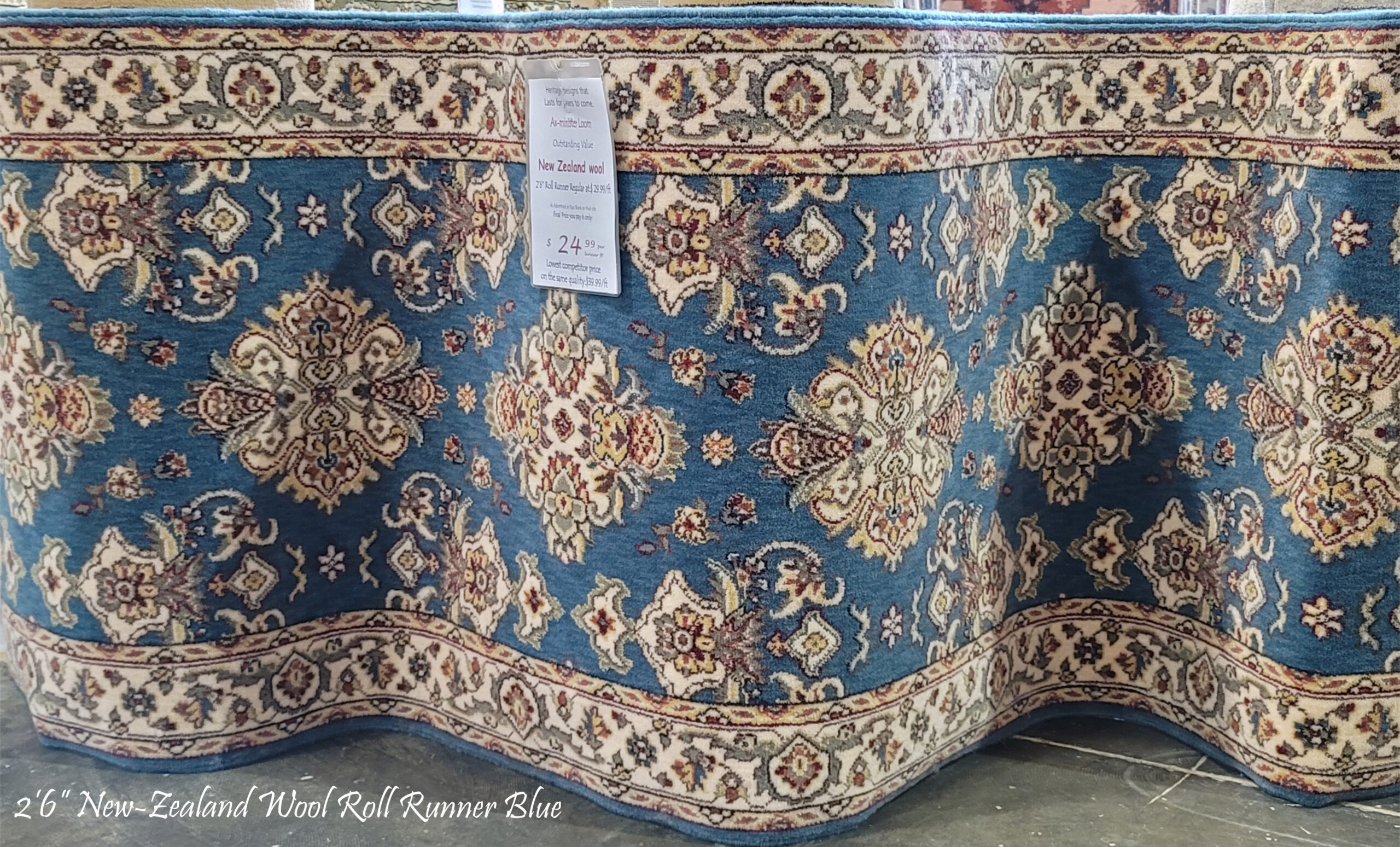 2’6” New-Zealand Wool Roll Runner Blue