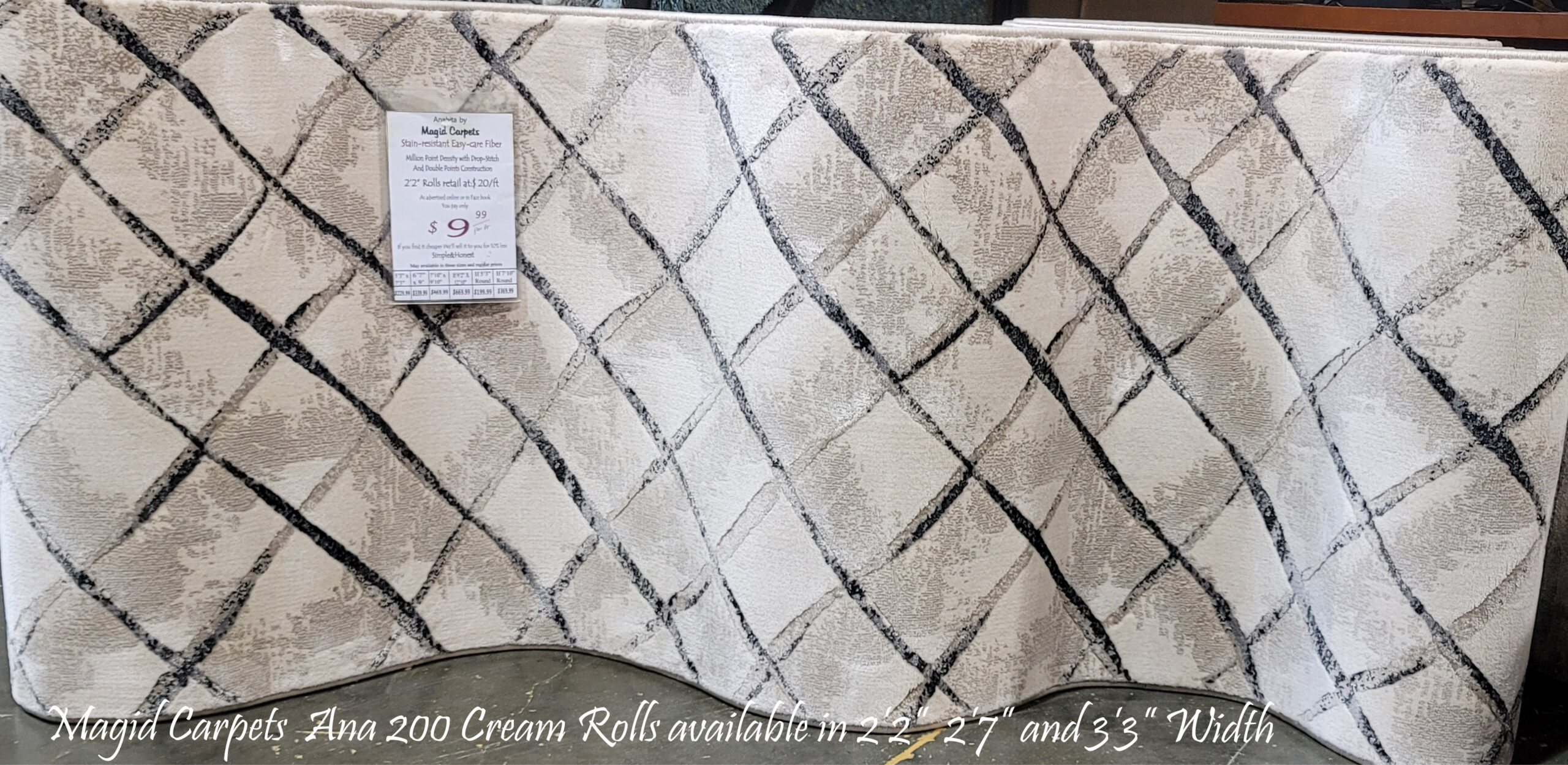 Magid Carpets Ana 200 Cream Rolls