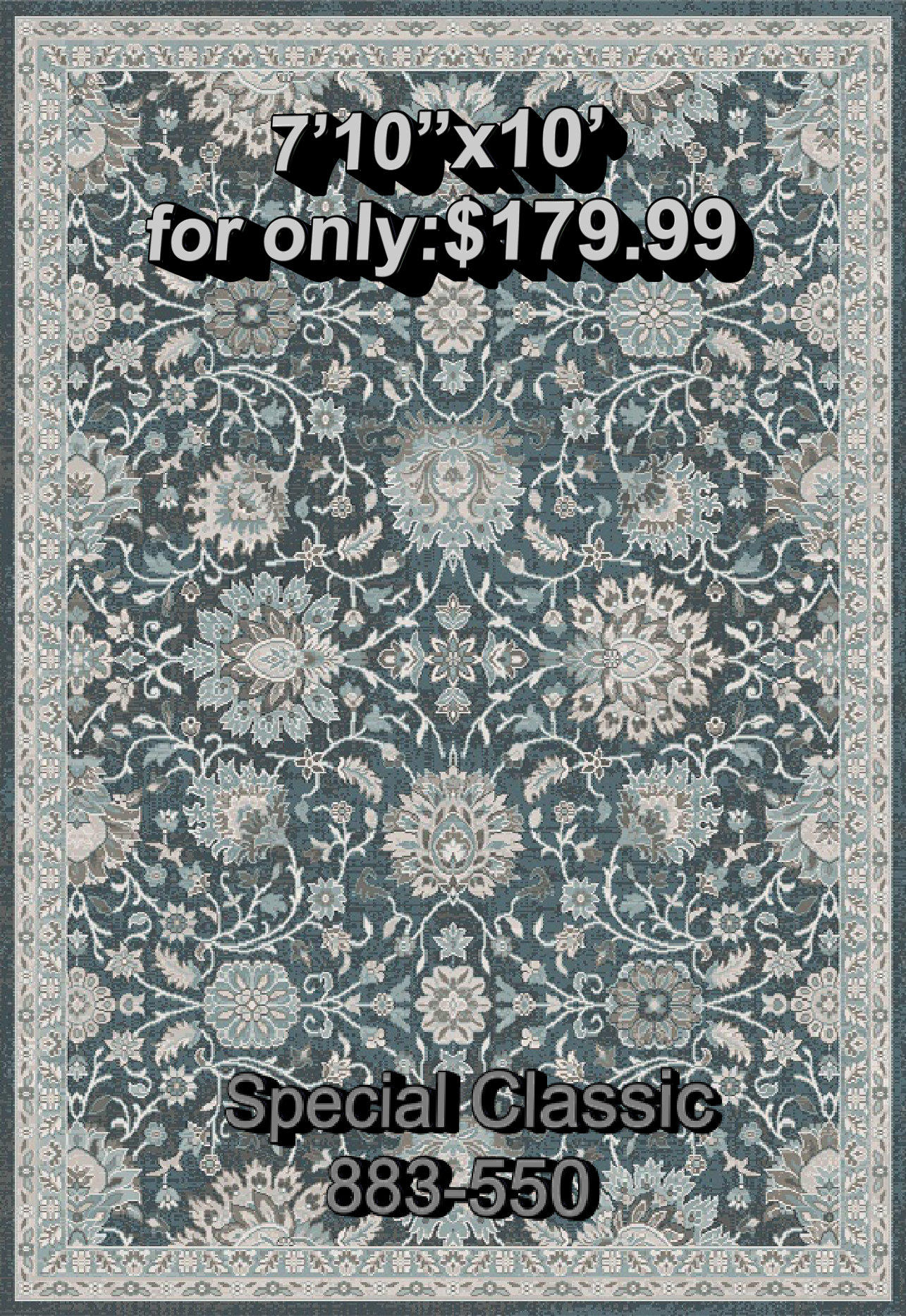7’10″x10′ for:$179.99(reg:259.99) and 9’2″x12′ 6″ for:$269.99(reg:359.99)